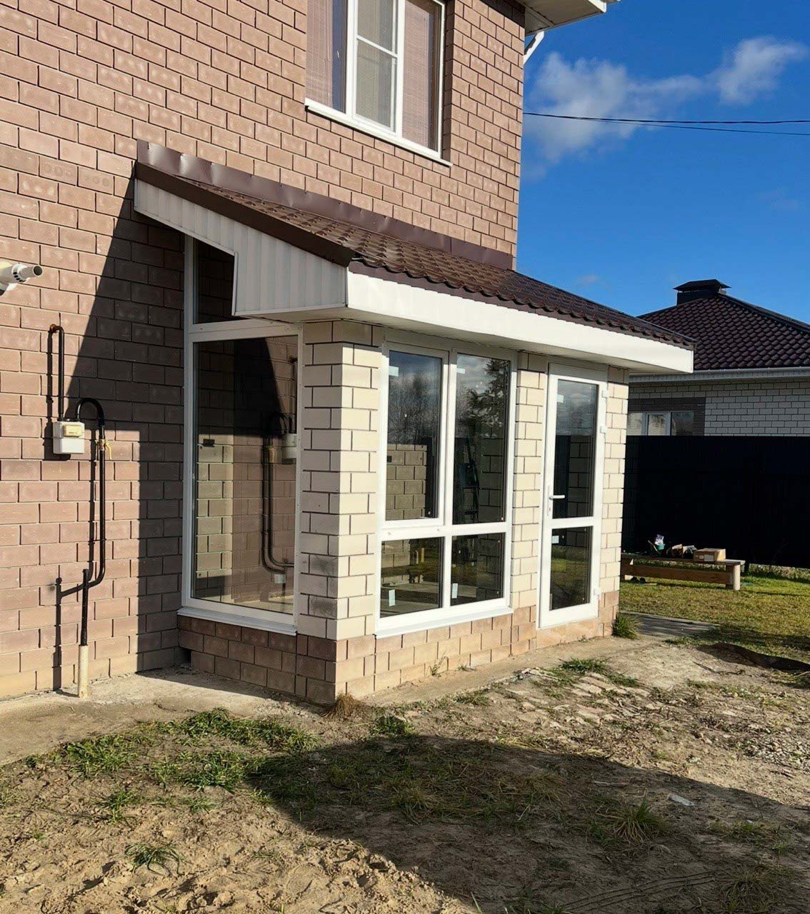 Остекление террасы. Константин подсказал раздвижные створки, получилось удобно. Работает чётко, по срокам уложились.